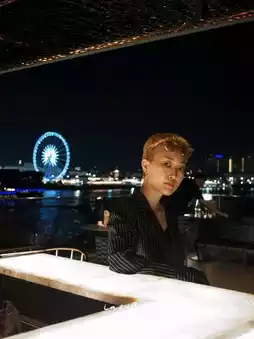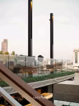 We arrived at 6pm just in time for the sunset 🌅 The view of the shop is very beautiful, both in the daytime and at night 🌃 It's a bit romantic 🌹 It's perfect for a chill, shy, and fun date 😚 Or you can come and socialize with friends because the shop has many seating areas, more than enough. Whether you sit upstairs or downstairs, the mood is good everywhere. On the day we went, there was a DJ booth playing live music for us. 🎶