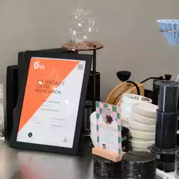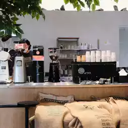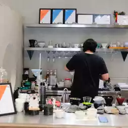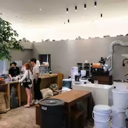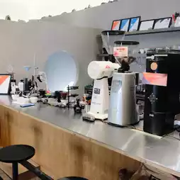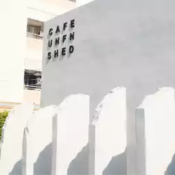 🔨⚪️Unfinished Coffee Roaster, a cafe in Lat Phrao Wang Hin area that has a raw, clean industrial feel, along with a unique identity according to the shop's name, which is designed to create the atmosphere of a shop that is under construction but is not yet complete, from the front to the inside, which is characterized by columns and rotten concrete slabs.