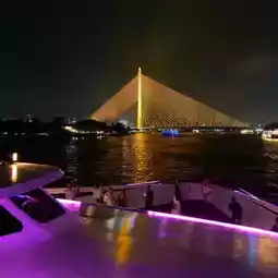🥂⛴ Take your significant other to a luxurious dinner cruise along the Chao Phraya River with The Opulence Cruise, a large 3-story ship. The open-air deck allows you to enjoy the breeze and the view. The 1st and 2nd floors are indoor zones with international buffet and seafood. Enjoy the romantic atmosphere with live music throughout the cruise. The singers and musicians are fully entertained. Highlights include Wat Arun, Rama VIII Bridge, Asiatique and ICONSIAM. Enjoy a full 2-hour cruise from 8:00 p.m. to 10:00 p.m.