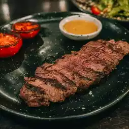 - Chunn steak, tenderloin steak, pure beef, served with grilled tomatoes. The dipping sauce is the restaurant's recipe that goes well with the steak