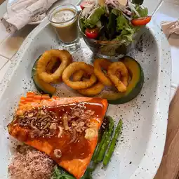 Recommended menus: Fruit salad, Salmon sashimi salad with mango, Grilled pork ribs, Salmon steak, Spaghetti carbonara