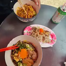 Fengzhu-Moo Charoen is a small shop on a 6-square-meter area at the ferry pier next to River City, not far from the Royal Orchid Sheraton Hotel. There are not many tables in front of the shop. The atmosphere is in the style of an old Chinese house. It is a small shop on a 6-square-meter area at the ferry pier next to River City, not far from the Royal Orchid Sheraton Hotel. There are not many tables in front of the shop. The atmosphere is in the style of an old Chinese house. You can eat right away. The shop has a variety of dumplings and noodle menus. For this shop, they do not use oil to cook. They steam and do not add MSG. The taste is delicious. The dumplings are delicious. I have never seen anything like this anywhere. Even the mixed noodles are delicious.