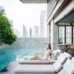 🍃 The swimming pool also has a great view, have fun swimming while enjoying the view of the tall buildings in Bangkok, and there is a bar serving drinks with a chill-out area. On the same floor, there is also a fitness center for your convenience.