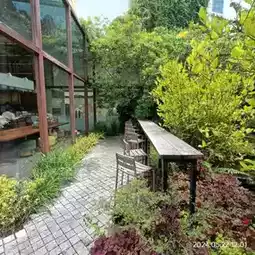 👉 Khumin shop is both a cafe and a restaurant. The area in the shop is surrounded by large and small trees, giving a shady atmosphere like being in the countryside.