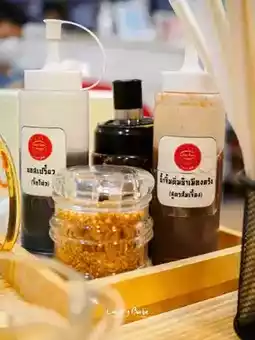 The restaurant is quiet, friendly, near BTS, easy to travel. The shrimp menu 🍤 is the best, so delicious 🥰 Don't miss it. Seasonings, sauces/dipping sauces, fried garlic are available for you to add yourself at the table. The fried garlic is very good, crispy and delicious. Sprinkle without holding back 🤣 If we have a chance, we will go back again because we want to try all the menus 🤩 I secretly saw that there is a rice menu as well. Baked pork rib rice, just the name is tempting 🤤