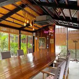 The air-conditioned room zone is a Glass House room that is very nice to sit in. You can sit and drink coffee. Come sit and work all day. Or whoever came It's a big group. want privacy The shop has a large wooden room that can accommodate 10-20 people, holding meetings easily.