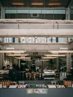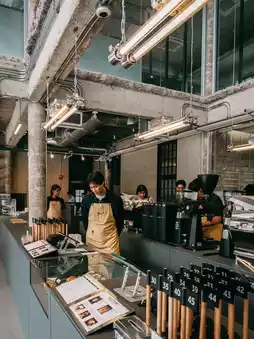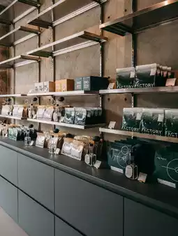 When you enter Factory Coffee, you will be immediately attracted by the rich aroma of coffee. The store's interior design adopts an industrial style, creating a simple and modern atmosphere. The location of the cafe is right next to BTS Phaya Thai station, with very convenient transportation.