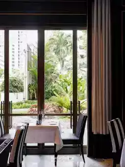 #tripแจกโรงแรมฟรี Original restaurant from England at Anantara Siam Hotel I didn't think I would get to try the food here. With the hotel's name and location in the heart of Ratchaprasong, I thought it must be exaggerated and (really) expensive. Although the hotel and lobby area look a bit vintage, I personally like the restaurant area very much. It is shady, has lots of trees, and has a pond for you to sit and relax. It's cool and comfortable.