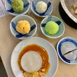 For dessert, there are water drop mochi, red bean mochi and ice cream.