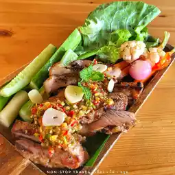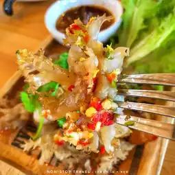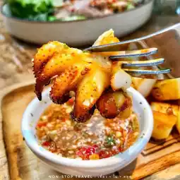 🐙 Grilled jellyfish: The jellyfish meat is crunchy. The seafood dipping sauce is very spicy.