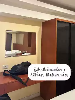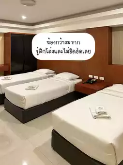We chose a large room that could sleep 3 people. Inside, there were 3 single beds. All the equipment was complete. The bathroom was also large and clean. The staff was helpful. And most importantly, there was a restaurant under the hotel. The price was 981.47 baht, divided by 3 people, only 300 baht per person.