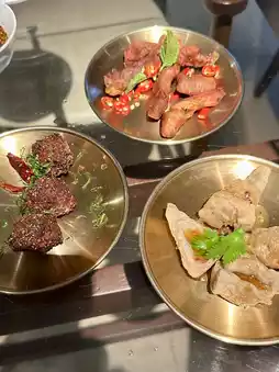 🧊 Recommended menu: Bacon, premium marbled meat, fatty meat, beef tongue But that's just the tip 🥹 The highlight is the single-dish meals, which are som tam, yum, grilled and fried food. Small plates but delicious and fast...som tam, fried pork salad, glass noodle salad, crispy morning glory salad, pork rinds, crispy salmon, grilled chicken liver, Isaan sausage, fish balls, fried pork belly with fish sauce. Oh my, every dish is delicious and of high quality.