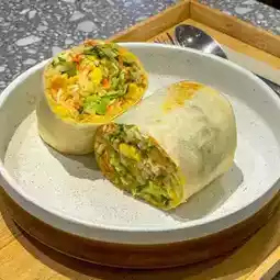 Wrap Mixed organic green vegetables, brown rice, corn, carrots, broccoli, eggs, almonds