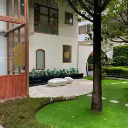 Everyone, I would like to tell you that if anyone is looking for a new coffee shop with a good atmosphere, come this way quickly! Today, I will take you to another shop that I must say has a very good atmosphere in the heart of Sukhumvit. I must say that this is one of the most impressive shops. The atmosphere is so good that if you didn't tell me, I would think I was in Khao Yai. Both the coffee, desserts, and everything else are great. There are many photo spots. It's perfect for chilling out. I must say that if anyone is looking for a good cafe, come this way, you won't be disappointed.