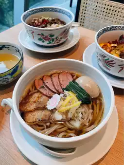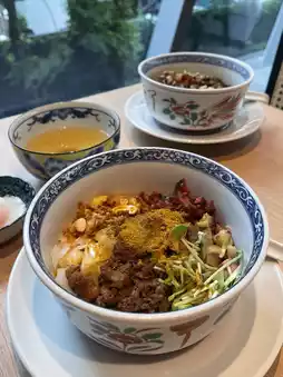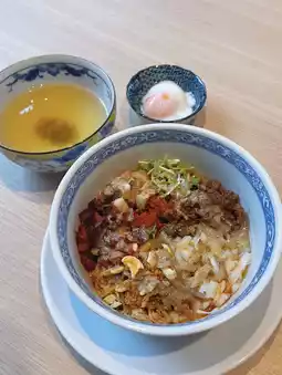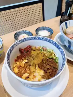 • Dry ramen 🍜 Dan-Dan Noodle, order the rich flavor and the new menu, Curry flavor, served with onsen egg and Dashi soup. If you finish the noodles, you can order rice (free) to mix with the remaining ingredients in the bowl.
