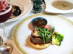 The A la carte buffet lets you order to your heart's content. It's highly recommended to book the Free Flow Mocktail package for great value. Every drink is excellent. As a meat lover, I was thrilled with the Tournedo Rossini steak made from high-quality meat, meticulously prepared and served with foie gras and a special sauce. The meat is incredibly tender, and the grilled lamb ribs are just fantastic. For those who don't eat meat, there's also a special dish, grilled snowfish. Other unlimited menu items include grilled tiger prawns, pizza, salad, spaghetti, and various cheeses. Finish off with a superb chocolate cake that's also gluten-free.