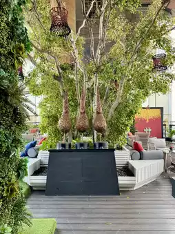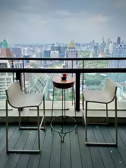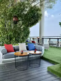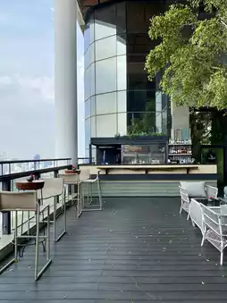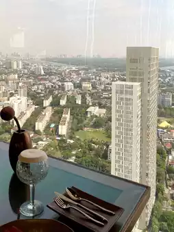 🍀 Saffron Sky Garden” Rooftop & Bar in “Banyan Tree Bangkok” Hotel, Chao Phraya River view and Bangkok city view from high angle, from the 52nd floor which is very high. And in the evening, you can see the sunset and then the lights from the buildings in Bangkok.