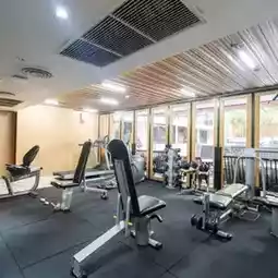 💦 There is also a communal swimming pool, fitness center, and sauna.