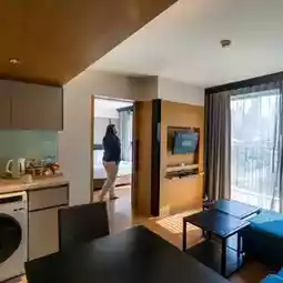 😴 The room is spacious, well-proportioned, giving a feeling like home. The large bedroom has a good, comfortable bed. The living room has a big TV to watch Netflix and enjoy watching movies.