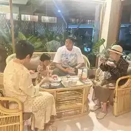 Today, we visited Ruenros in Sammakorn Village. The restaurant has a riverside atmosphere with a retro feel. The food is delicious, and most importantly, we were celebrating a birthday. The restaurant has a cafe corner called RUENROS Wines & Spirits. The interior is warmly decorated, with two private rooms, each with a sofa set and a book corner for both children and adults. The cakes are also delicious. Most importantly, the staff are friendly and provide excellent service. We ordered Earl Gray tea for only 70 baht, a great price.