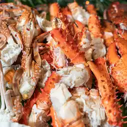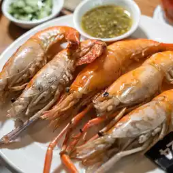 River shrimp, blue crab, sweet clams, oysters, tiger prawns