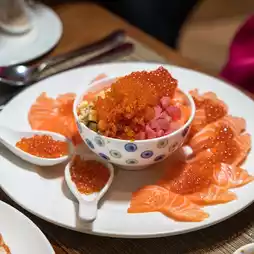 Kaisen Don, rice topped with assorted raw fish, maguro