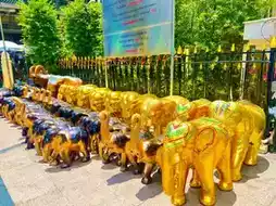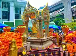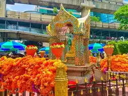 The Phra Phrom Shrine in the heart of Bangkok is a center of faith for both Thais and foreign tourists. People come to pay homage continuously. It is a large Phra Phrom that is open every day. There is no entrance fee. People often come to pray for their wishes to come true.