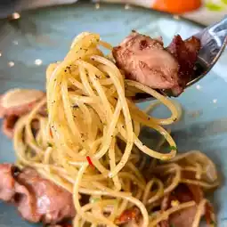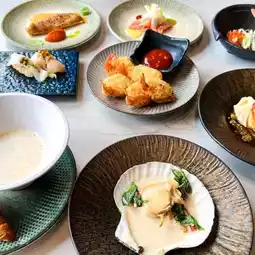 For teenagers who love noodles, there is a menu of Italian sausage spaghetti, crispy shrimp pad thai, and the Japanese zone has engawa ponzu yuzu sushi, hotate sushi, Japanese shiitake mushroom sauce, Hokkaido scallops. And Hijiki seaweed, passion fruit sauce, spicy pickled scallops, cold Inaniwa udon, pork tonkatsu. Anyone who brings children will definitely love it, especially the shrimp with corn sauce and cheese menu, very enjoyable to eat. And the dessert menu, Banoffee, sweet, mellow, delicious, complete, suitable for all generations. And there are many other delicious menus. The atmosphere of the shop is also beautiful.