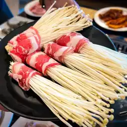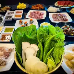 Eat with fresh vegetables, lettuce leaves, Chinese cabbage, sesame leaves, green chili, kimchi, golden needle mushrooms, oyster mushrooms, pumpkin, onion, pickled radish or pickled mustard greens. Grilling like this, I want to invite you to enjoy it like when watching Korean series and want to eat together. With a starting price of only 249+