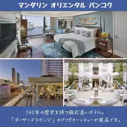 Today, we'll be introducing hotels on Bangkok's riverside.