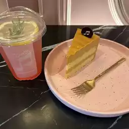 Cassette Coffee Bar is a café located at Siam Station in Bangkok, Thailand! When you open the door, a cute and wonderful world with a pink theme unfolds. It's definitely Instagram-worthy. Many people were taking photos in front of the door. There were many drink and cake options, but since I was in Thailand, I ordered the Thai tea cake. It wasn't too sweet and had a perfect taste, very delicious.