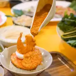 Experience the original Shabu buffet like no other, with the original shrimp fat soup that you must try here. Enjoy premium pork and beef with high quality, delicious fresh sea bass, glass shrimp, and fresh seafood every day. No matter which group or gang, there are also a variety of foods. Appetizers are very good. Come try the Royal Shrimp Fat Rice by Khun Reed. I must say it's the best. Crispy fried shrimp, pork and shrimp egg bread, and signature soups, including red soup, brandy, original Yaowarat shark fin soup, Japanese black soup, so awesome. Complete with desserts, including pandan ice cream from Phetchaburi, fresh coconut milk and hard boiled eggs, sundae, fried sticky rice, fruit ice cream, and herbal drinks. There is fragrant jasmine tea, sugarcane chrysanthemum with safflower, fragrant lime, fragrant coconut from Ban Plaew with butterfly pea petals. I really like that you can refill as much as you want!