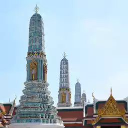 The Temple of the Emerald Buddha, situated within the Grand Palace complex in Bangkok, is a masterpiece of Thai religious and artistic heritage. Revered as Thailand's most sacred Buddhist temple, it houses the iconic Emerald Buddha, a small but breathtaking statue meticulously carved from a single piece of jade. Visitors are entranced by the temple's intricate architecture adorned with glittering mosaics and gilded stupas. The serene ambiance invites contemplation amidst ornate murals depicting Thai mythology and history. A visit to this spiritual sanctuary offers a profound insight into Thailand's cultural legacy and spiritual devotion, making it an essential stop for any traveler to Bangkok.