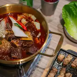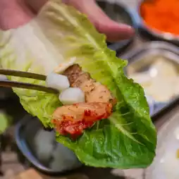 🔸️ Korean grilled pork belly, delicious sauce, fresh vegetables, perfectly grilled pork belly. Eat together and it's super delicious