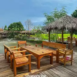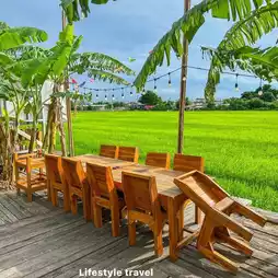 Thinking of green rice fields🌾 and eating delicious food is enough to make you full. Tam Lan Thung is the answer. Sitting and looking at the rice fields as far as the eye can see, plus there is a fish pond to add to the atmosphere. There are tables and pavilions to add to the atmosphere. At Tam Lan Thung, there are spicy Isaan food. Som tam with fermented fish sauce is very fragrant. Tam Lao Lan Thung is served on a large plate with lots of ingredients. Followed by Miang Lan Thung, crispy pork, crunchy shrimp, fresh cockles, eating it as Miang is very delicious. Big sea bass with fish sauce, eaten with hot rice🥩Crying shirt, grilled hot, bitter sauce goes very well together. Salmon salad is really delicious, they give a lot. Oh, here there is also Jim Jum🥘The price is affordable, starting at 199.- Let's say that anyone who thinks of Isaan food or wants to relax in the atmosphere must go to Tam Lan Thung at least once. Authentic Isaan food, cherry clams, boiled frogs, or Isaan food from our home, don't miss it.
