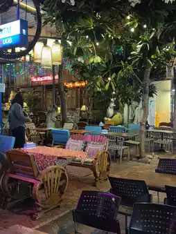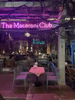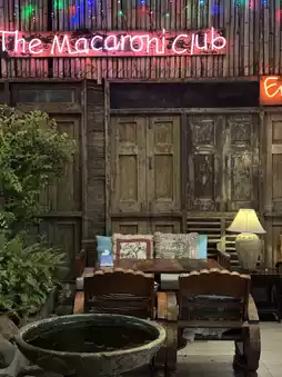 A restaurant with a great atmosphere located on Rambuttri Road!! The Macaroni Club ~ Located at the main entrance of Rambuttri, this is a cafe and restaurant with a great atmosphere full of overseas sensibilities!! The quiet and leisurely atmosphere made the food and cocktails I ordered both satisfying.