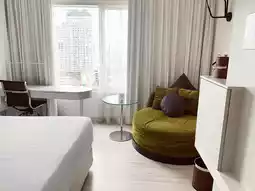The room is clean and spacious. I love the cozy corner with side table and sofa by the window. You can also get a city view of the pratunam area.