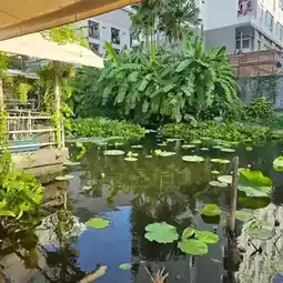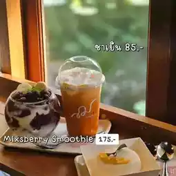 Hello friends, where have you been this holiday? As for us, we will focus on a cafe near home, an outdoor type because the weather in our country is really good these days. J. J. J. J. J. Koff is a cafe hidden in Soi Lat Phrao 16. It is a very shady shop with a good atmosphere. I have been there twice and was very impressed by the taste of the cake. But this shop also has food, but I have never tried it. The shop is easy to get to. The entrance to the alley is very shady. I almost never thought there would be a cafe in a place like this.