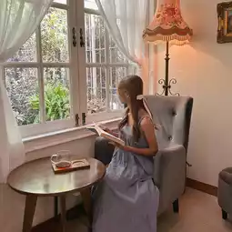It is a cafe with a very shady atmosphere, located in the heart of Bangkok, surrounded by nature, trees, and various flowers. ๐ชด๐ธ