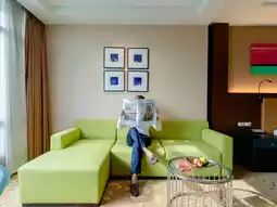 The facilities and common areas here are also complete, such as The Hourglass restaurant, a breakfast room on the B1 floor that serves buffet food, a heated swimming pool with both outdoor and indoor zones, and a fitness center, sauna, Kid's club, and Executive club lounge on the 28th floor.