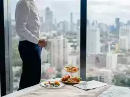 และยังมีห้องอาหารหลากหลายเลยค่ะ ไม่ว่าจะเป็น Medinii ห้องอาหารอิตาเลียนตั้งอยู่บนชั้น 35 ที่มีวิวเมืองสวยงาม Bangkok Heightz ร้านอาหารและบาร์บนชั้นดาดฟ้าที่ชั้น 39 ที่เสิร์ฟอาหารหลากหลายพร้อมวิวพาโนรามาของกรุงเทพฯ Axis & Spin เลานจ์บาร์บนชั้น 38 บรรยากาศโรแมนติกสุด ๆ รวมไปถึง H2O Pool Bar บาร์ที่ตั้งอยู่ริมสระว่ายน้ำ มีเครื่องดื่มสดชื่นและของว่างเบาๆ ให้บริการ เหมาะสำหรับการพักผ่อนริมสระชิลล์ ๆ ค่ะ
