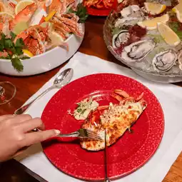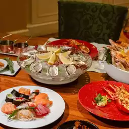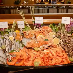 - Seafood on ice: various types of oysters including Girardo, Fine de Claire and Irish, river prawns, black tiger prawns, king crabs, mantis shrimp