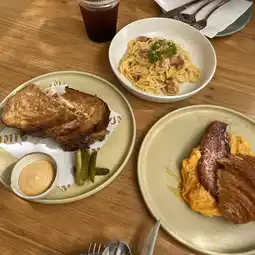This all-day brunch restaurant is located in the Chaochon area and right next to One Two Two Cafe. The atmosphere is fantastic, especially if you sit outside under the trees in the morning—it's super relaxing. The restaurant offers a wide variety of brunch, pasta, and salad options, all of which look delicious. My favorite is the Eggs Bacon & Croissant, which is incredibly tasty when eaten hot. Plus, you can order coffee from One Two Two Cafe to enjoy with your meal. Absolutely love it 🫶🏻