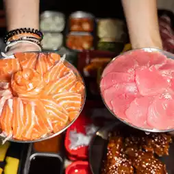 #Buffet Review 399 All-you-can-eat salmon sashimi!! Korean BBQ, famous restaurant in Barattong, Jeju BBQ Jeju, Korean BBQ buffet, meat lovers - pickled fish lovers must not miss, over 56 menus, all you can eat for 2 full hours, large stove, satisfying grilling and eating