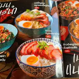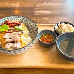 Bonita VoYage invites you to savor the delicious flavors of our Charcoal-Grilled Roast Pork Donburi, a legendary recipe passed down from generation to generation. In addition to the Charcoal-Grilled Roast Pork and Crispy Pork Donburi, the restaurant also offers other signature dishes, such as the Donburi with Egg and Crab Meat, featuring fresh crab meat delivered daily from Surat Thani province. And the dishes we ordered were the Charcoal Roasted Pork and Crispy Pork Donburi 🐷 and the Smoked Duck Breast with Basil Donburi 🦆, served with side dishes like salad, fish sauce, chili, and soup. The restaurant uses jasmine rice 🍚.