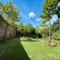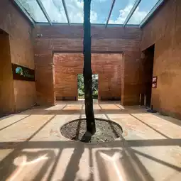 This is the "Forest Learning Center in the City by PTT Reforestation and Ecosystem Institute." It's a simulation of a forest in Bangkok. When you come here, you'll feel the shady atmosphere of nature.