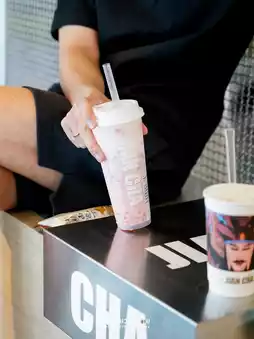 For the Watermelon Tea with Coconut Jelly and Water chestnut Pearls, the taste has a slight coconut scent, but overall, we think it's a unique taste, plus the water chestnuts that are like popping pearls, and inside the middle is the crunchy texture of water chestnuts, making it fun to chew.