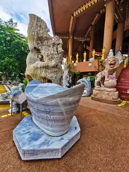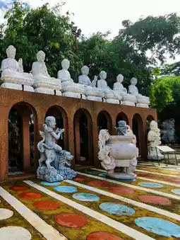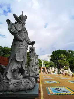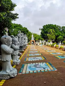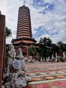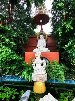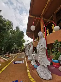The atmosphere inside the palace is quiet and spacious, suitable for meditation, praying, and walking around the place. There are beautiful and intricate decorations, such as statues and paintings related to Buddhist beliefs. It is a very beautiful place.