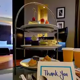 #Accommodation with bathtub On a holiday, recharge at Hilton Bangkok Grande Asoke, the latest hotel in the major Hilton chain in Bangkok. It didn't take long to check in as I was checked in by K.Bie, who is one of the team members who has been with Hilton for more than 5 years and is currently based at Asoke. He welcomed me and thanked me for being our diamond member, and informed me that the room is not ready yet and is being set up. He invited me to go up to the Executive Lounge on the 24th floor to wait for my room, which is open from 10:00 to 20:00, providing refreshments all day, and from 17:00 to 19:00, there is an evening cocktail. While I was waiting for my room, K.Beer, who is stationed at the Lounge, welcomed me warmly and recommended drinks while I waited. There are a variety of drinks, tea, coffee, and fruit juices available all day. For today's room, I stayed in a King Deluxe Suite Room. Upon entering the room, I was met with a welcome card from K.Bie with a happy mother's day set. The room is spacious and decorated warmly like being at home. There are 2 bathrooms, a toilet with bidet, a Jacuzzi bathtub, and a rain shower. The room also has a walk-in closet, 2 large TVs, and a mini-bar. There is a fresh coffee machine, capsule type, and a selection of teas during the evening cocktail hours from 17:00-19:00 every day. Serve canapes, cheese boards, cold cuts, fried snacks, salads, and various bakery items, both white and sweet. For drinks, there is a cocktail menu, Mocktails, various beers, white wine, red wine, and Sparkling Wine. The hotel is conveniently located near Asok Intersection. It is easily accessible by BTS Asok Station and MRT Sukhumvit Station.
