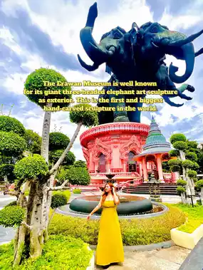 The Erawan Museum is well known for its giant three-headed elephant art sculpture as exterior. This is the first and biggest hand-carved sculpture in the world.